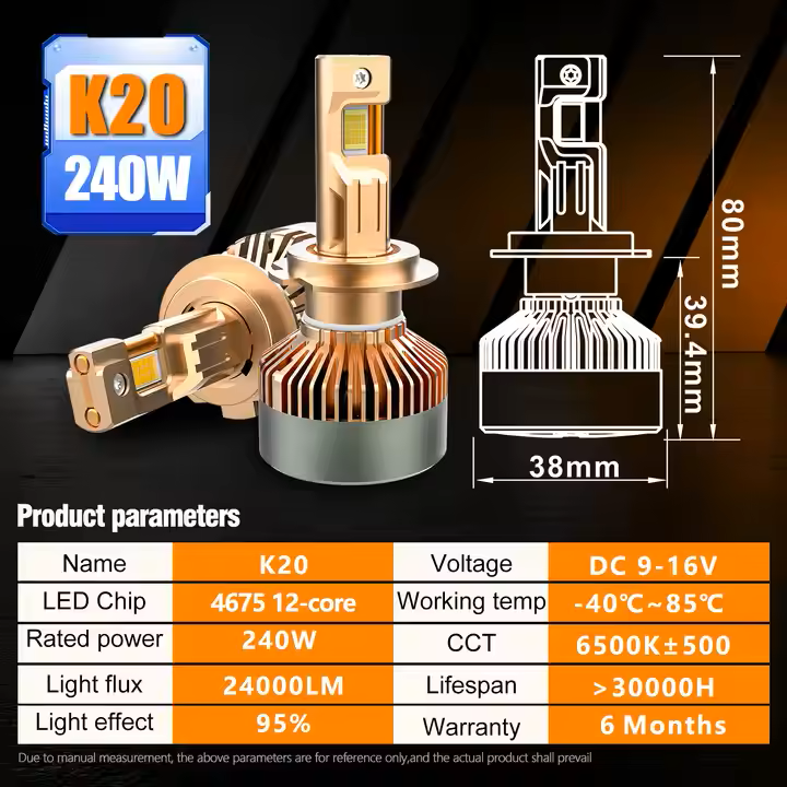 | Name: | AKE K20 240W 24000Lm 6500K led headlight bulb car led light |